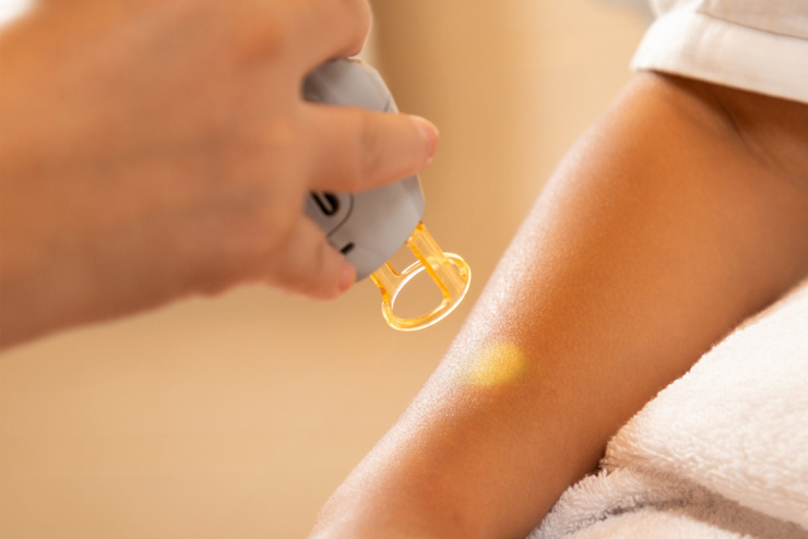 Most clients feel only mild cooling and pressure during treatment. Many relax, read, or use their phone during the session.